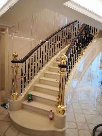 豪華銅樓梯室內(nèi)樓梯:在別墅的樓梯間安裝銅欄桿,既安全又能提升室內(nèi)的豪華感。陽臺和露臺:在陽臺或露臺上 ..